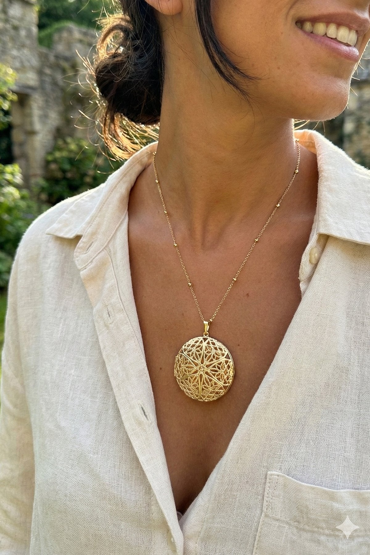- Tasarım: Yıldız desenli, açılır kapaklı madalyon form
